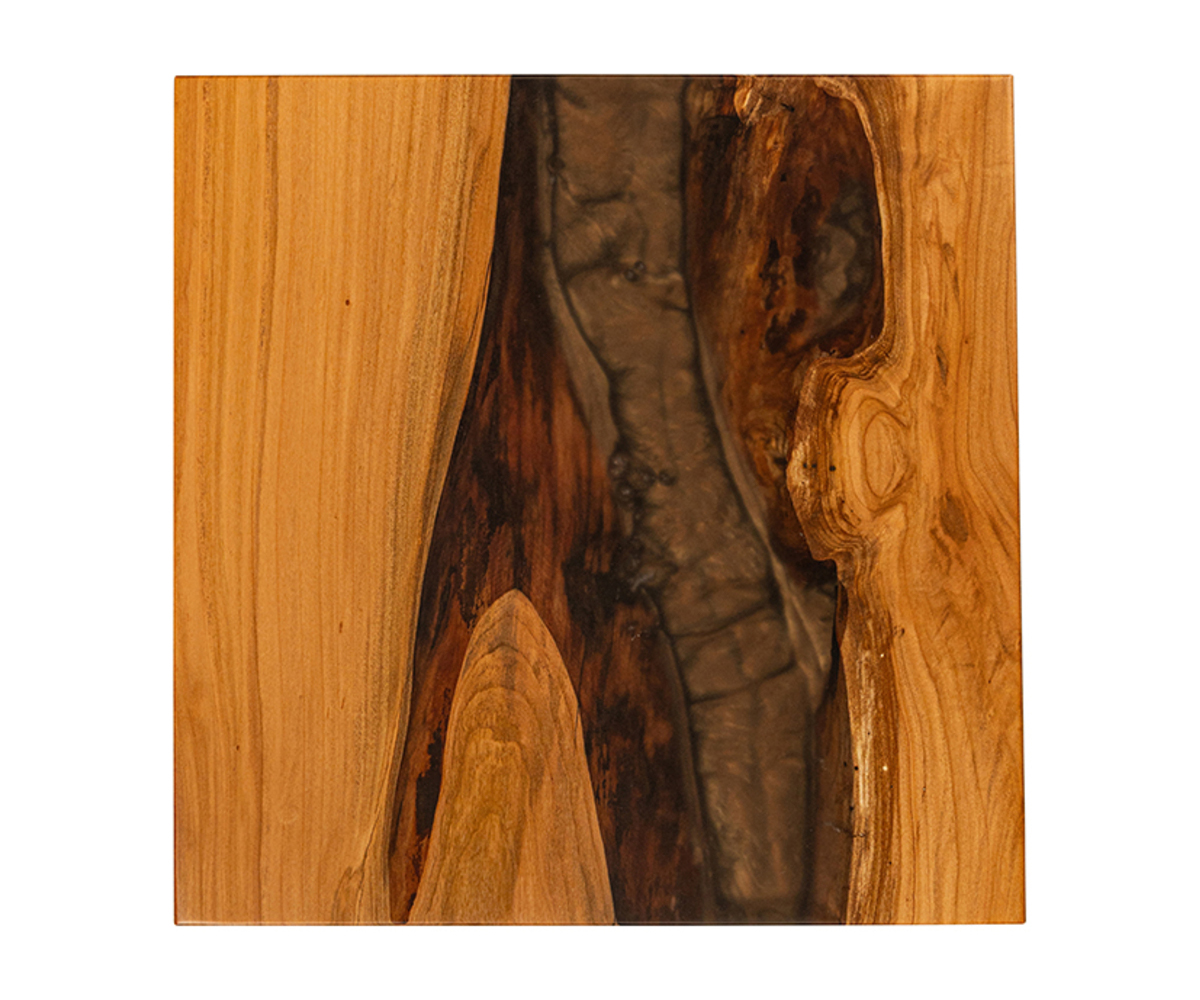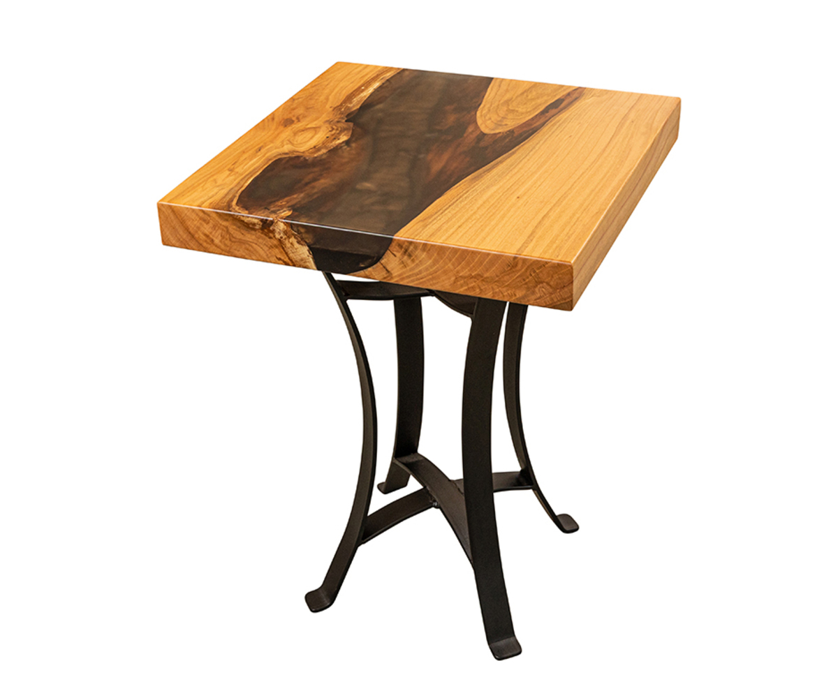 Features: • One of a kind; you are purchasing the one you see shown here • Dark epoxy creates detail in table top • Metal base