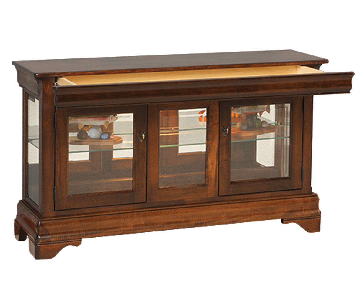 • Hidden drawer in the top molding