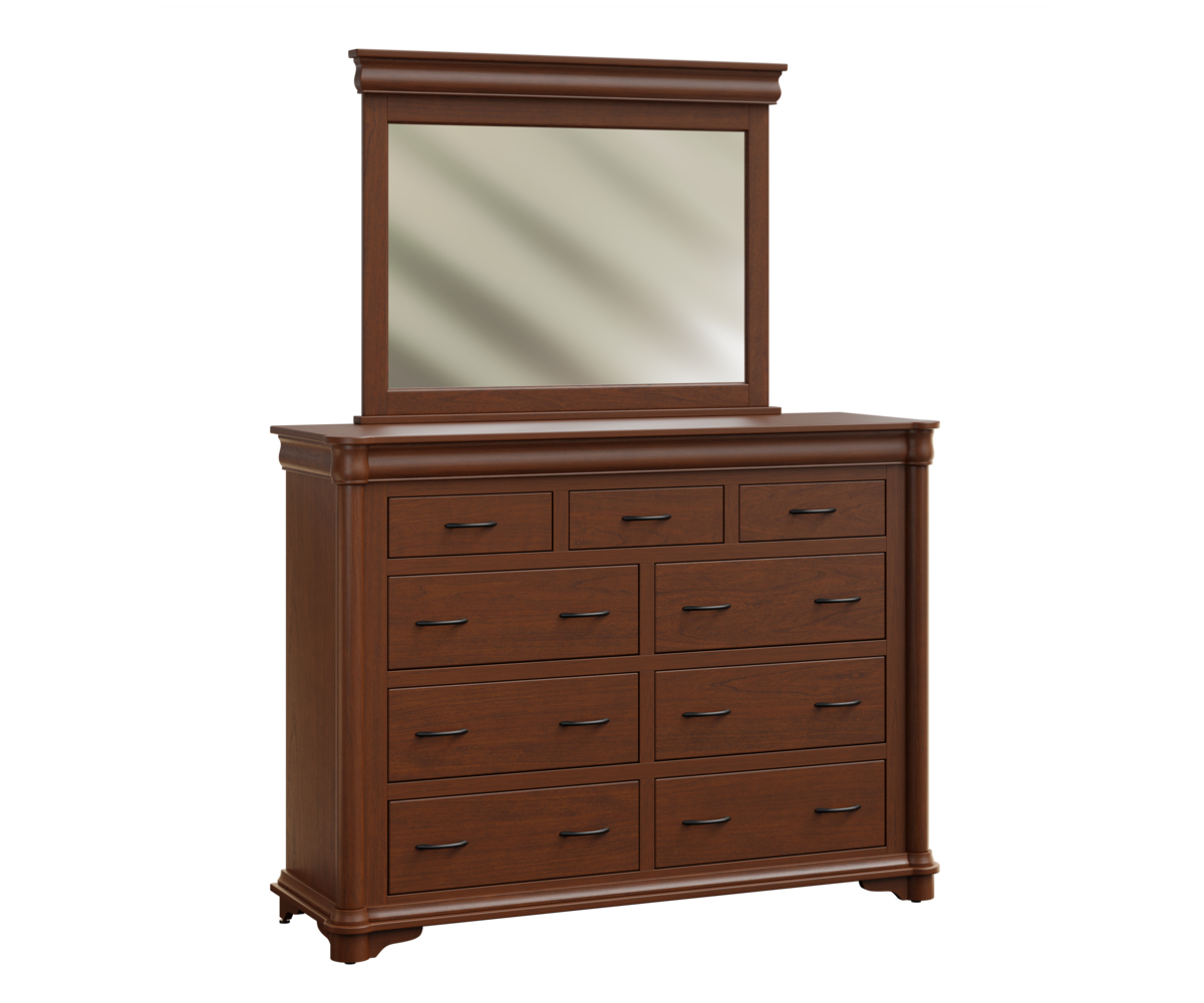 Dimensions: Dresser: 61″W x 21″D x 46½”H Mirror: 43½”W x 33¼”H