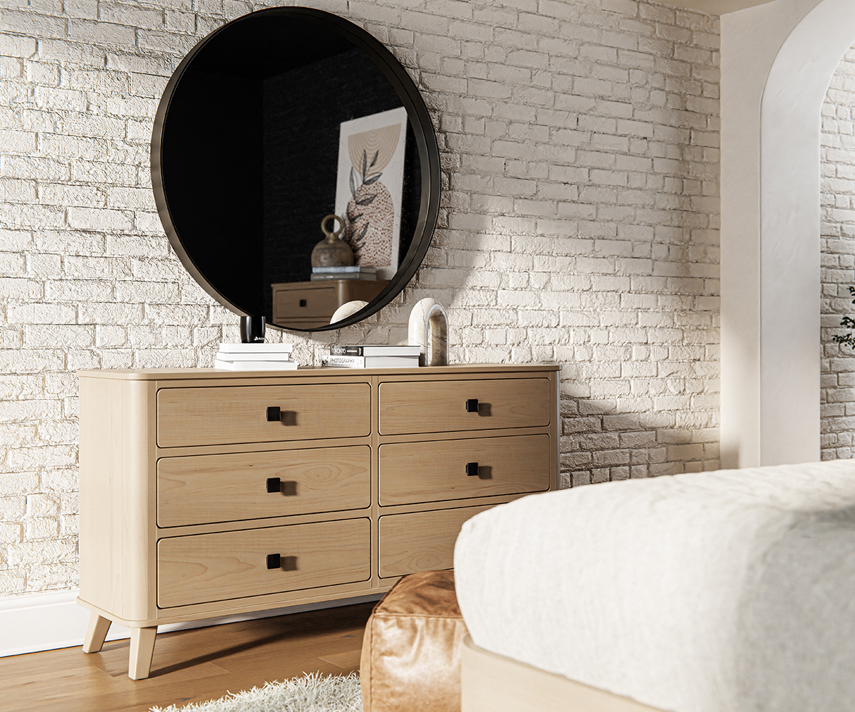 Dimensions: Dresser: 65½”W x 18½”D x 42″H Mirror: 48″W x 34″H